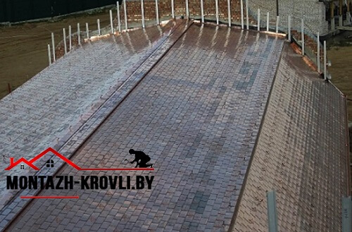 Монтировали медную гибкую черепицу со снегозадержателями и водосточной системой